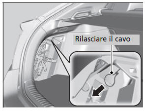 - Tirare la cinghia sul coperchio del pianale bagagliaio e aprirlo.