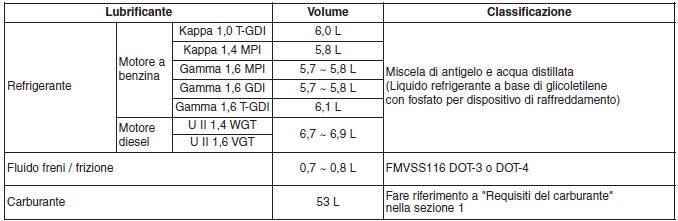 Questi lubrificanti e fluidi sono consigliati per l'impiego su questo veicolo.